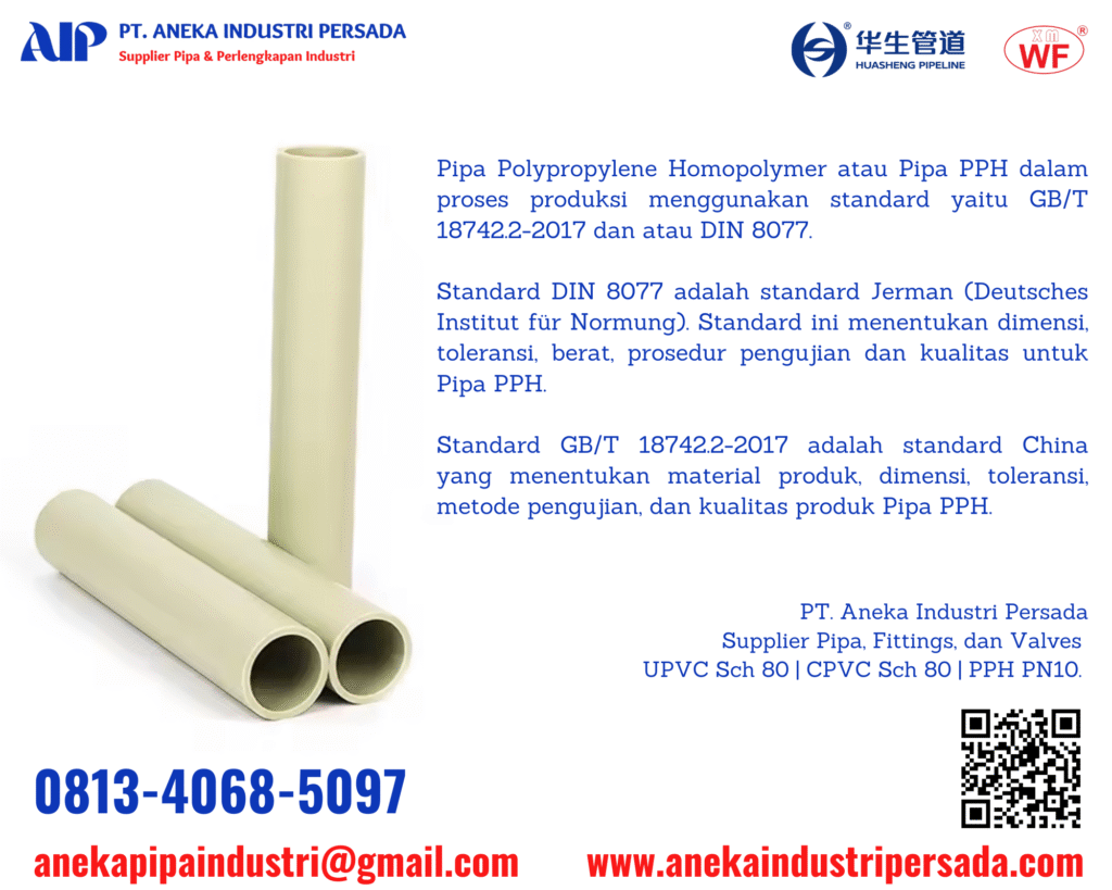 PT. aneka Industri Persada Distributor Pipa PPH SDR11 PN10 Standard GB/T 18742.2-2017 (DIN 8077) Brand Huasheng Cenit dan WF.
